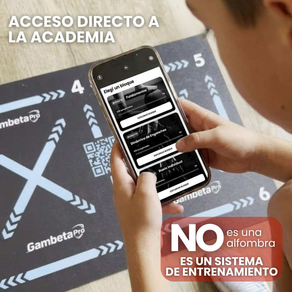 El curso Gambeta Pro se basa en videos por niveles que guían a los chicos a entrenar en la alfombra, mejorando control, coordinación y confianza a su propio ritmo.